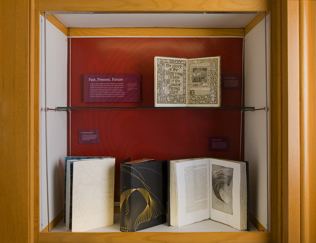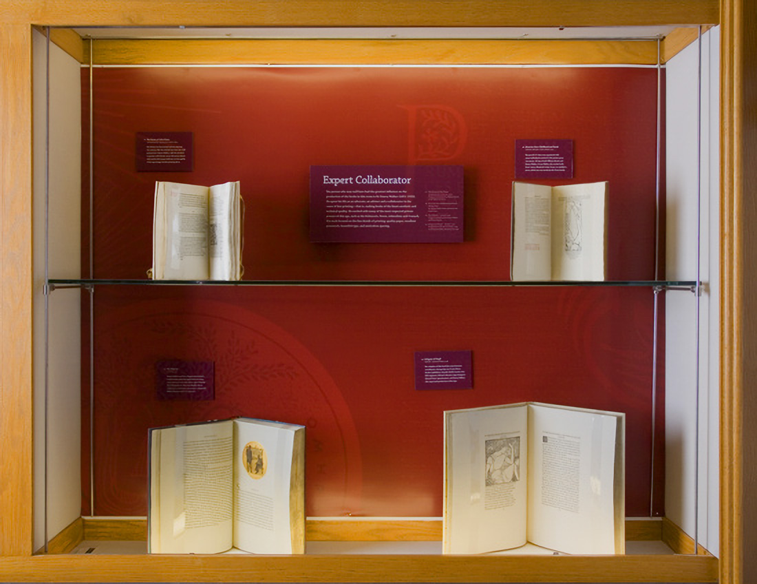 The person who may have had the greatest influence on the production of the books in this room is Sir Emery Walker, who lived from 1851 to 1933 he spent his life as an advocate, advisor, and collaborator in the cause of fine printing — that is, making books of the finest aesthetic and technical quality. He worked with many of the most respected private presses of the modern age, such as the Kelmscott, Doves, Ashenden and Cranach presses. His work focused on the fine details of printing, quality paper, excellent press work, beautiful type, and meticulous spacing.
